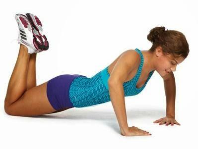 Abre tus brazos tanto como sea posible y mantén las piernas juntas. Empieza a hacer flexiones, llevando lentamente los codos hacia los lados. Haz 3 series de 12-15 repeticiones cada una.