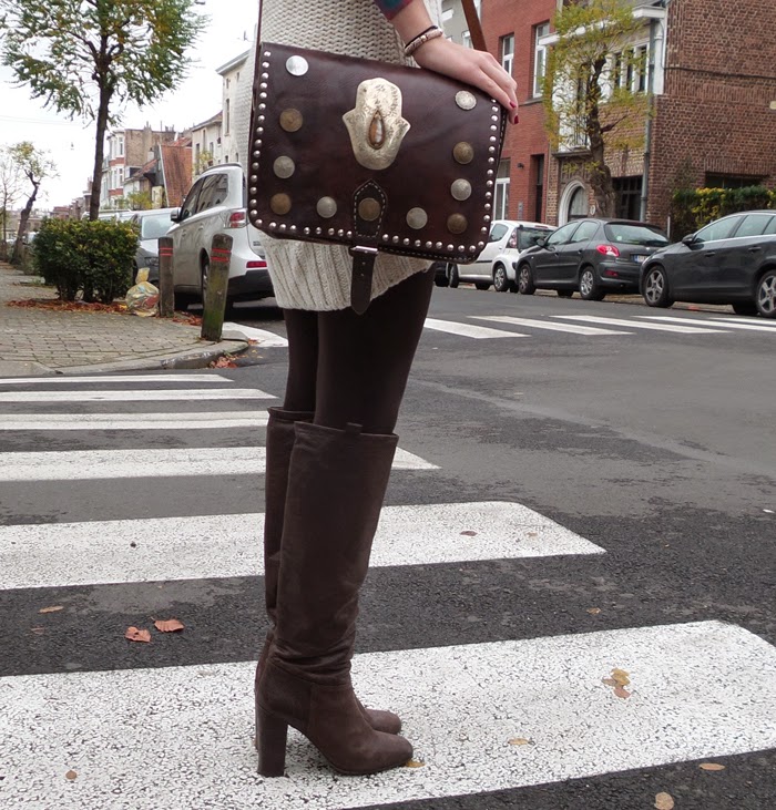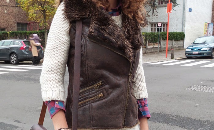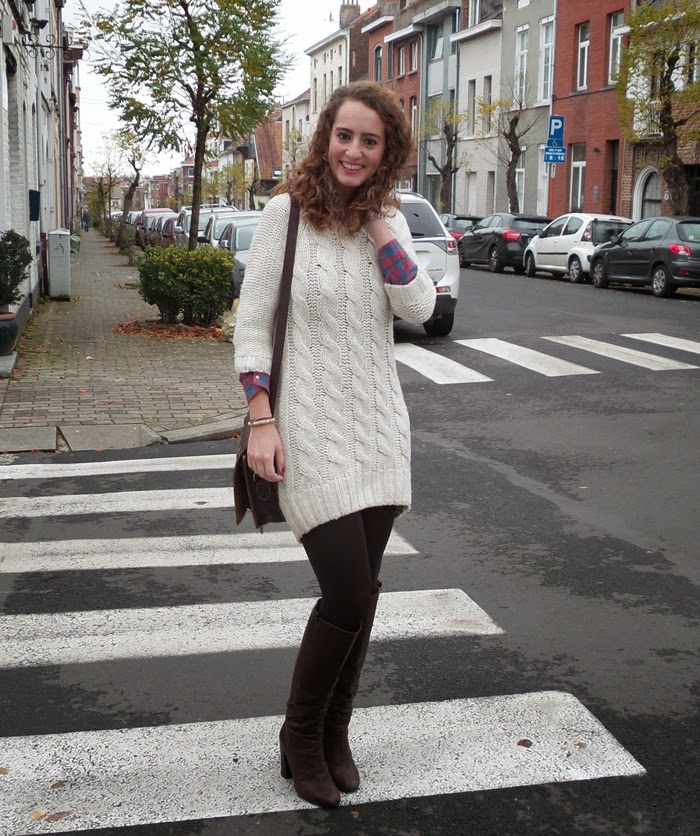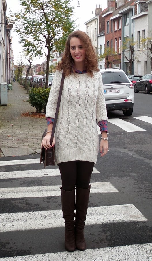 Hi guys!How is the week going? Today I show you a look must have for winter; comfortable, cozy and fashionable at the same time. As key item of the outfit a knitted off-white dress which because of the color you can combine it in every possible way. In this occasion I chose to mix it with a red and blue check shirt and brown accessorize. The sleeveless coat I like it specially because of the aviator look, the boots and the bag you have already seen them in different occasions like here or here, they have a special place on my wardrobe for the moment.