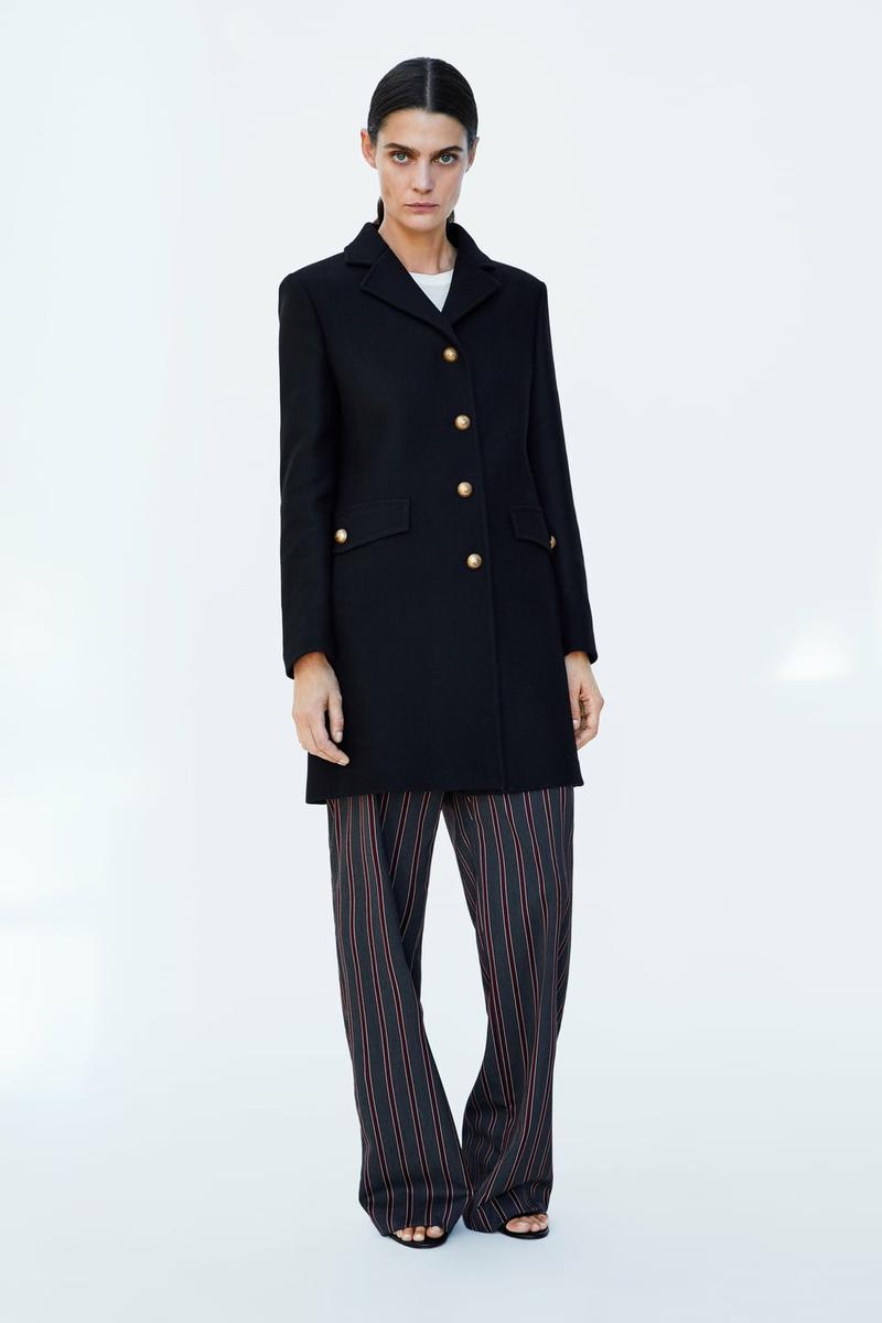 Para disimular las caderas lo mejor es optar por abrigos que potencien la parte superior. Que sean estructurados en los hombros o con detalles o volumen en esta zona.