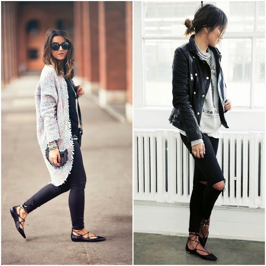 Today I bring you an inspiration post with one of the trends of the season: lace up flats. Last year we started to see them in some outfits, but this season lace up flats are a basic in our closet. They fit great with skirts, dresses, shorts and in formal outfits, but I love them with ripped jeans. I do a selection of the best outfits of the street style with this trend.