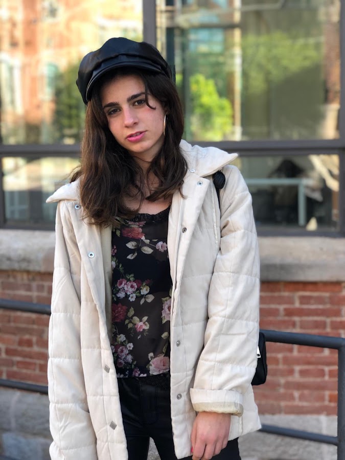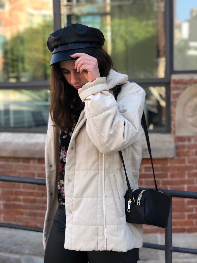 Después de este resumen, os muestro el look que llevé para el tercer día de desfile. Una blusa transparente de flores, unos pantalones de cuero, una gorra y unos botines negros. Fue, uno de mis favoritos y que a vosotros también os gustó.