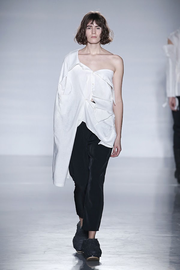 Complex Minimalism es el nombre que recibe la colección en donde se pretende romper con las fronteras que se hacen entre las personas, siendo el minimalismo la clave para demostrarlo. De aquí que los colores principales sean el negro, blanco y una pequeña dosis de rojo en forma de estampados, bordados, alguna transparencia y siluetas bastante rectas. Por último, otro de los elementos que acompañó toda la colección fueron los tirantes ajustados al torso.