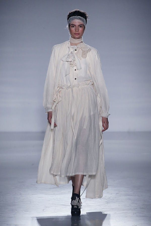 Little Creative Factory para su presentación incluyeron la actuación que encajó a la perfección con el nombrea su colección “The Makers”. En ella, se pretendía salir a relucir la parte más delicada del artista y creadora que cada uno tiene. Lo hicieron con una sublime y delicada interpretación con 6 bailarinas con pelucas altas de color blanco y con una de ellas en el centro con vestido largo negro que actuaba de guía.