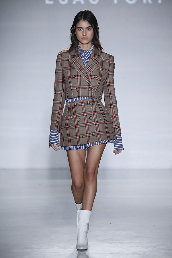 El desfile de Esaú Yori fue uno de los que tuve la oportunidad de poder asistir y del que se resultó una colección de piezas atemporales con mezcla explosiva de feminidad y masculidad con trajes clásicos donde el protagonismo lo encontramos en la cintura, con caderas deproporcionadas y marcando espalda.