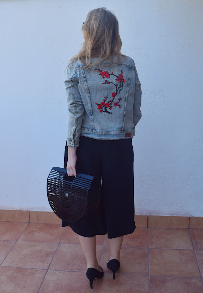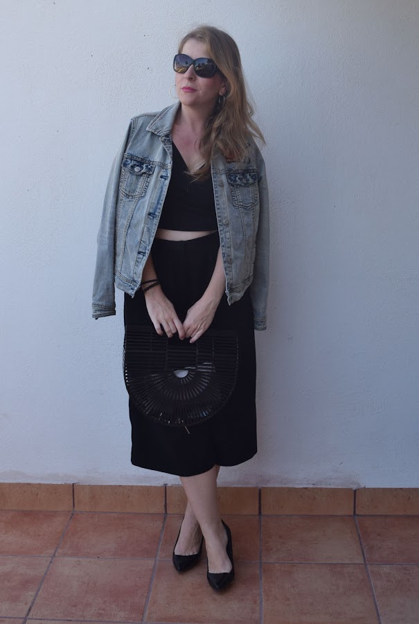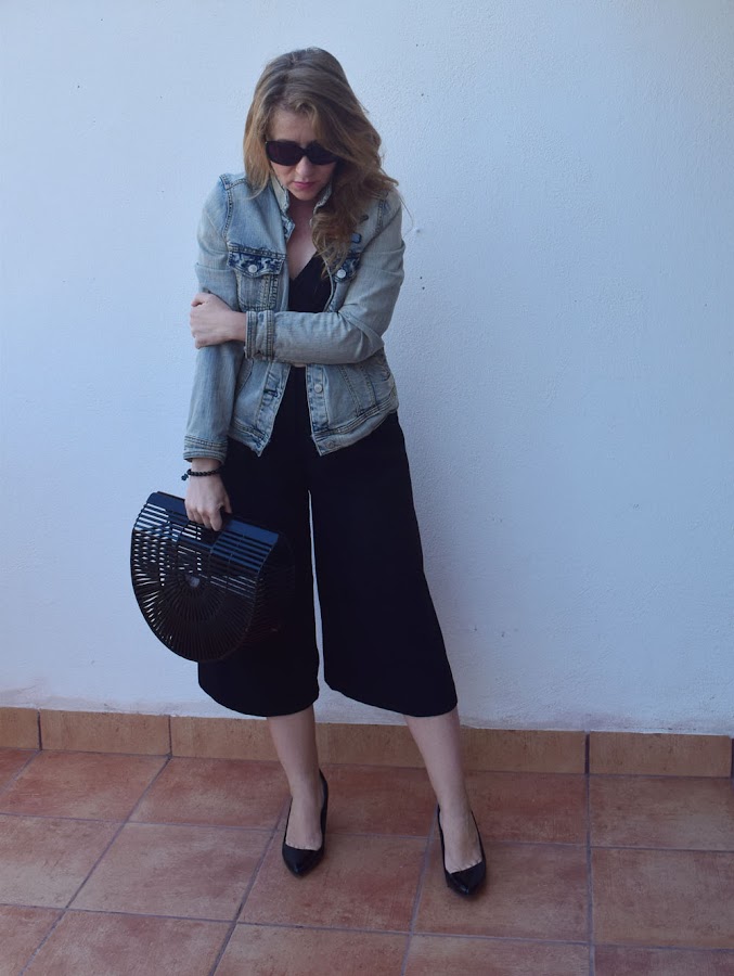 Todos los accesorios en negro y una chaqueta vaquera para completar.