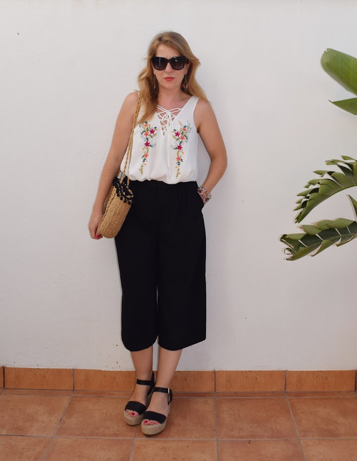 Un crop pant negro, que a fuerza de llevarlo y ponerlo, me parece de las prendas más estilosas, cómodas y como puedes ver en este post, se puede llevar con multitud de prendas y estilos diferentes.