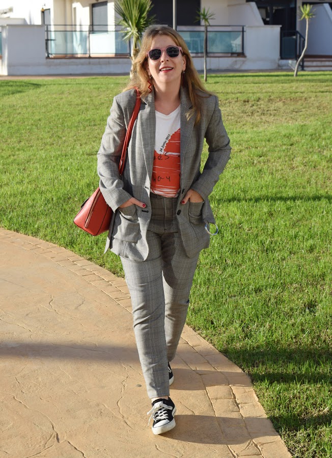 Nada como conjuntar ambas piezas y añadir unas zapatillas para conseguir un look de lo más actual lleno de comodidad. El toque de color lo ponen el bolso y mi camiseta de Corazón Partío.