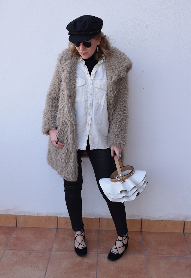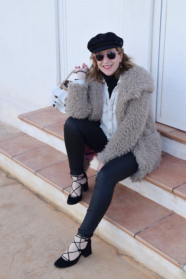 Siguiendo la idea de las superposiciones y el utilizar prendas de otras épocas durante todo el año, en esta ocasión he optado por combinar pantalón con una blusa lencera y una chaqueta gruesa para no pasar frío.