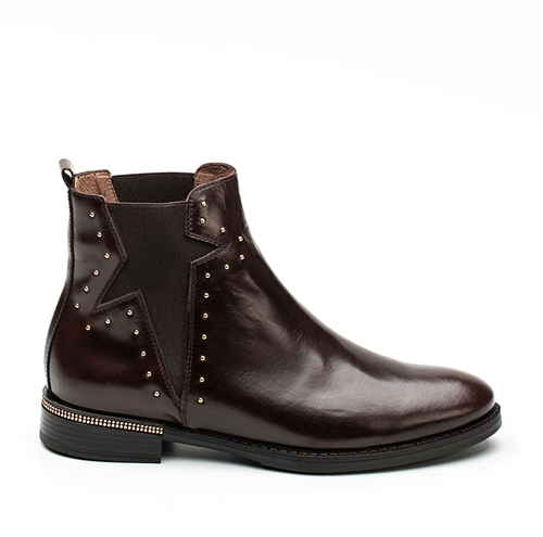 Wonders. Botines de piel con costura en forma de estrella, tachas y tira de strass en el talón. 125€