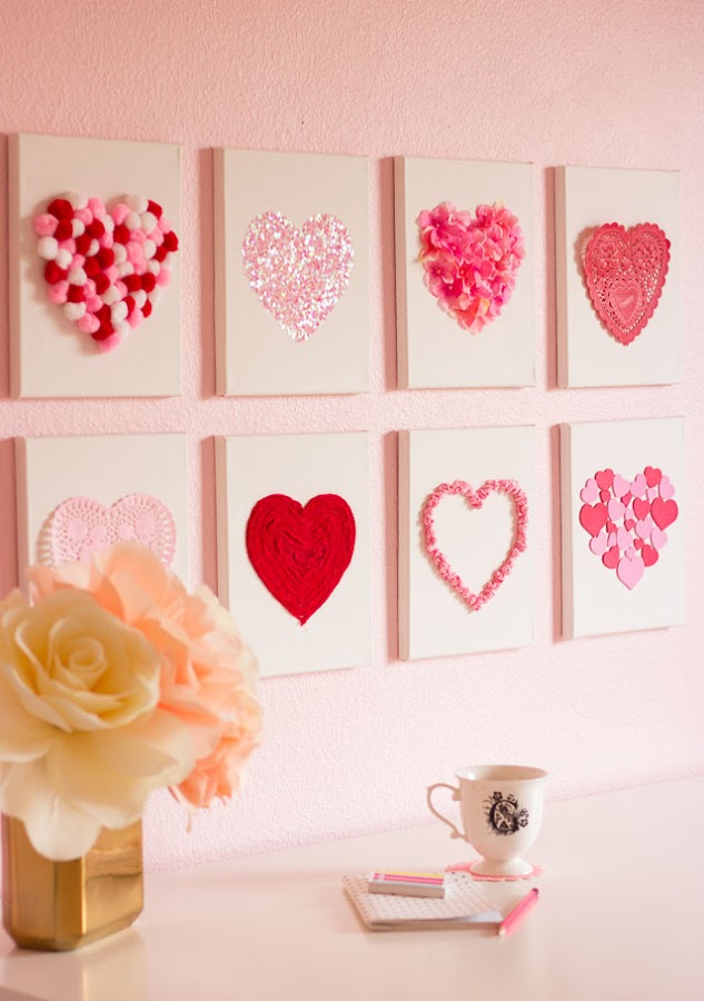 La última propuesta también es sencilla y muy customizable. Esta bloguera nos enseña cómo hacer varios modelos de cuadritos para San Valentín. También nos puede servir para decorar la casa todo el año o para darle un toque de corazones a una fiesta.
