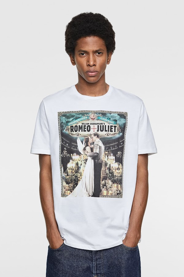 Una camiseta perfecta para regalar a tu chico si te encantó la peli de Romeo y Julieta, con Leo DiCaprio y Claire Danes de protagonistas, te acuerdas? De Zara Man: 17,95 €