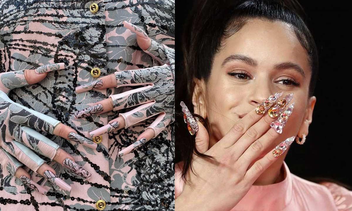 Mientras que algunas famosas se decantan por las manicuras más naturales y minimalistas, otras como Rosalía, Billie Eilish, Kylie Jenner, Rihanna o Blanca Suárez apuestan por la extensiones acrílicas y uñas de fantasía. Muchas de estas decoraciones creadas por auténticos artistas de nail art como Tammy Taylor o Juan Alvear de NailsbyJuan. Obras de arte que no todas podemos llevar en el día a día, pero que nos encanta admirar.