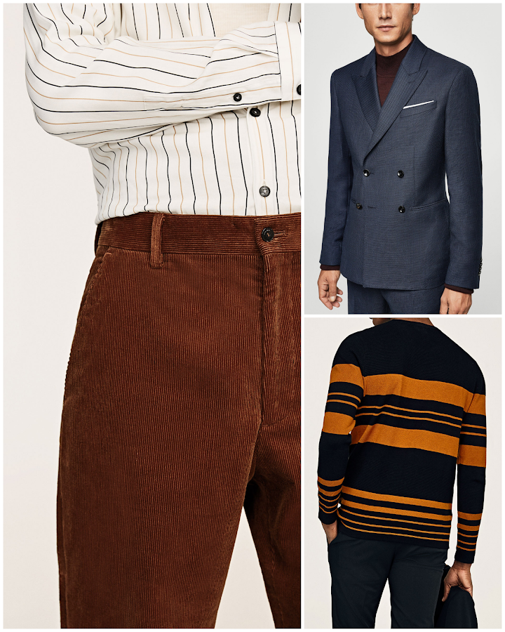 Otra tendencia que ya vimos en mujeres es la setentera y con ella el tejido de pana y los jerséis de rayas. A mi no es una tendencia que me encante, pero ahí está. La opción del pantalón de pana para chico es bastante arriesgada (tal vez la vea más para niños), pero en formato cazadora lo veo muy ponible.