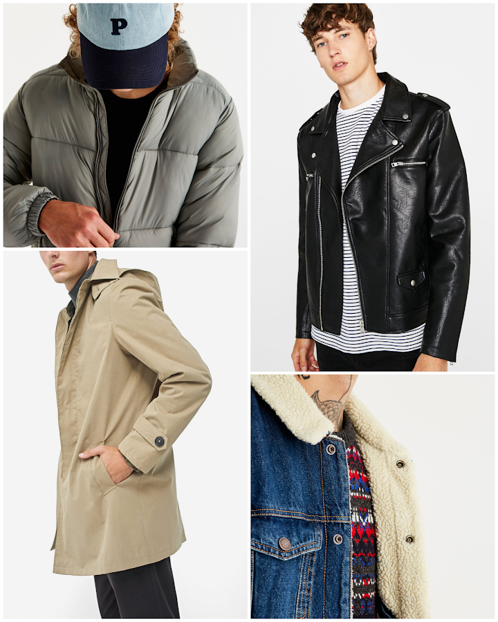 bomber acolchada de P&B - 25,99€ | chupa de cuero de Bershka - 45,99€ | gabardina de Stradivarius - 45,99€ | cazadora denim con borrego de P&B - 39,99€