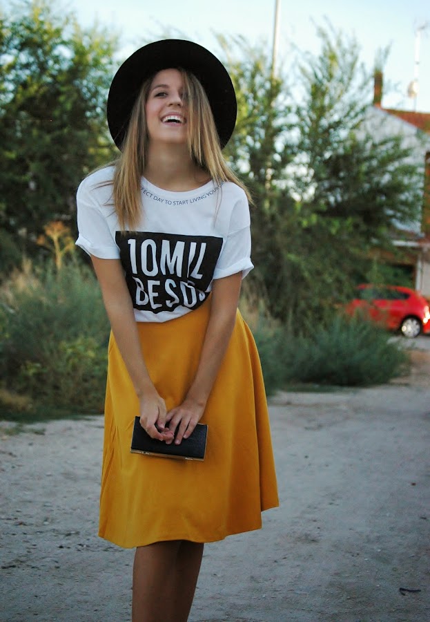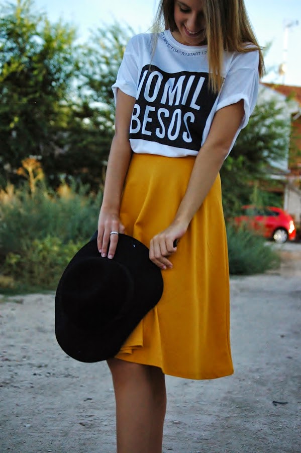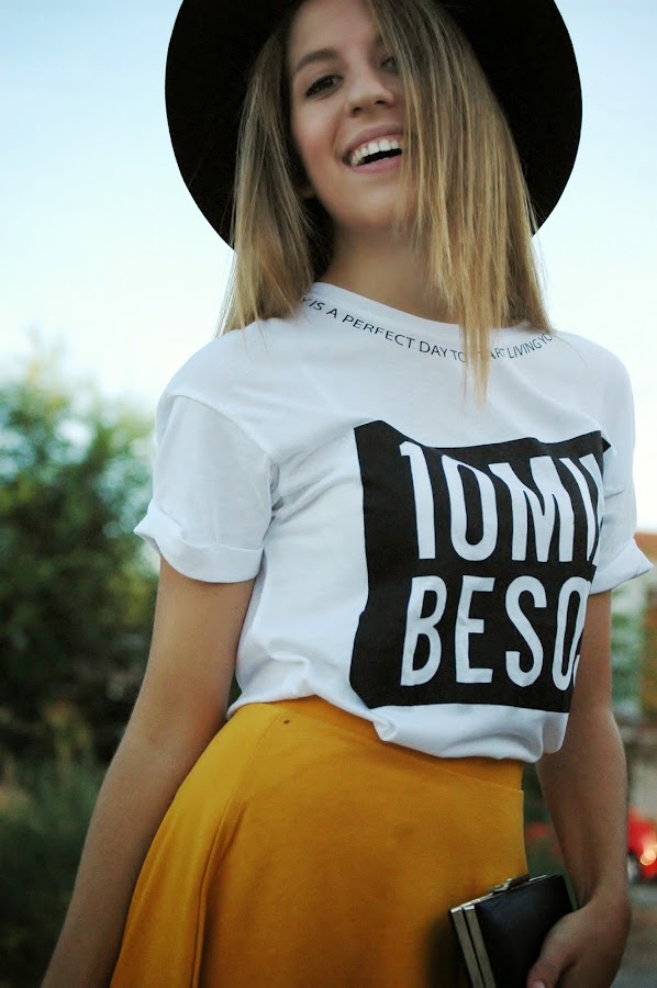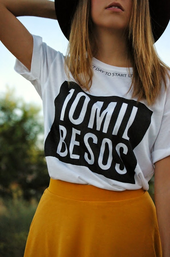 ¡Hola Florecillas! Bueno bueno, ¡que alegría! ¡Superadas las 10.000 visitas al blog! No me ha dado tiempo a actualizar cuando ya las pasamos con creces. Muchísimas gracias, de verdad, por todas ellas y por vuestros comentarios que me hacen súper feliz (como ya dije en mi cuenta de instagram) y me dan fuerza para seguir con mi pequeño rinconcito. Cuando hice el primer post todo era incertidumbre pero poco a poco fue cogiendo forma hasta llegar a hoy..y solo es el comienzo, aun tengo dudas, siempre intento dar lo mejor de mí y desde el respeto hacia la gente que profesionalmente se dedica a esto. Lo que busco es compartir con vosotras y que vosotras compartáis conmigo esto que tanto nos gusta, la moda. Por eso y por todo lo que nos queda os mando 10.000 besos, como bien dice mi camiseta (aunque añado casi 300 más). Como este es un post un tanto especial para mi, quiero sortear la camiseta que llevo en el look de hoy entre todas vosotras. Cuando la ví pensé que estaba hecha justo para este día, pero aun así y fuera de este contexto me parece una chulada y una prenda que está muy de moda esta temporada, las camisetas con mensaje. Este, en concreto dice:"Today is a perfect day to start living your dreams"