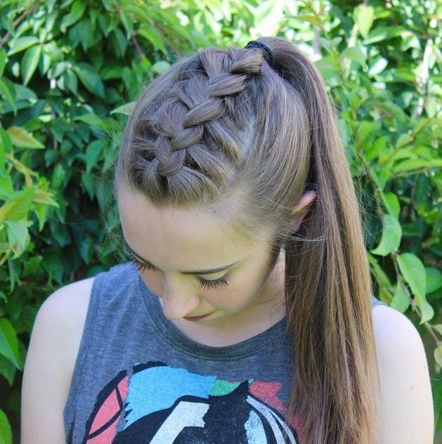 Ideal para: Esta trenza frontal definitivamente se verá mucho mejor para las mujeres que tienen el cabello largo. La cola trenzada debe ser larga, elegante y brillante.