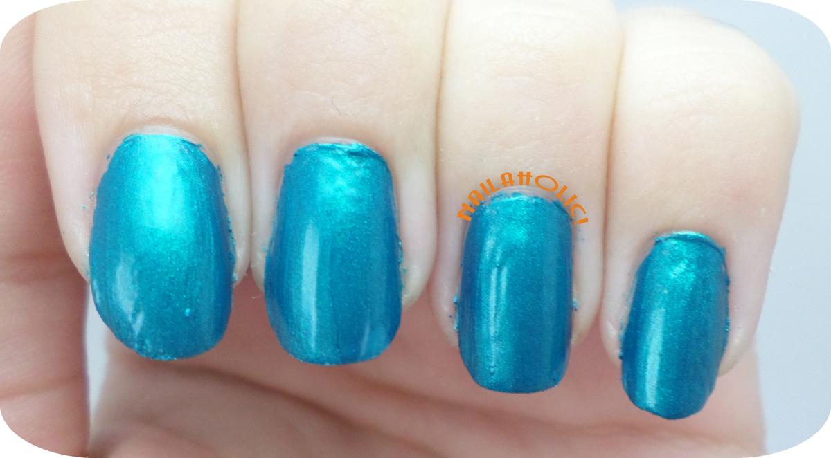En las fotos (exceptuando la última) el tono no se aprecia tal cual es. Realmente es un tono duocromo entre turquesa y verde, o lo que es lo mismo: ese tono tipo aguas tropicales que a todas nos recuerda a las sirenas. Al no ser demasiado bueno el pincel tiende a dejar estrías y la consistencia del esmalte no es demasiado fácil de trabajar. Pero sinceramente, por 1? que cuesta, no se le puede pedir mucho más.