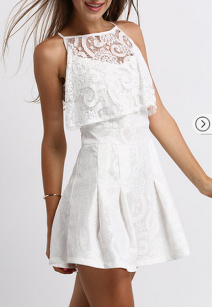 También me ha encantado este mono que aúna varias tendencias de la temporada (mono, blanco, encaje) y tiene un toque más arrelgado. Además, parece un vestido sin serlo, con lo que tiene comodidad añadida.