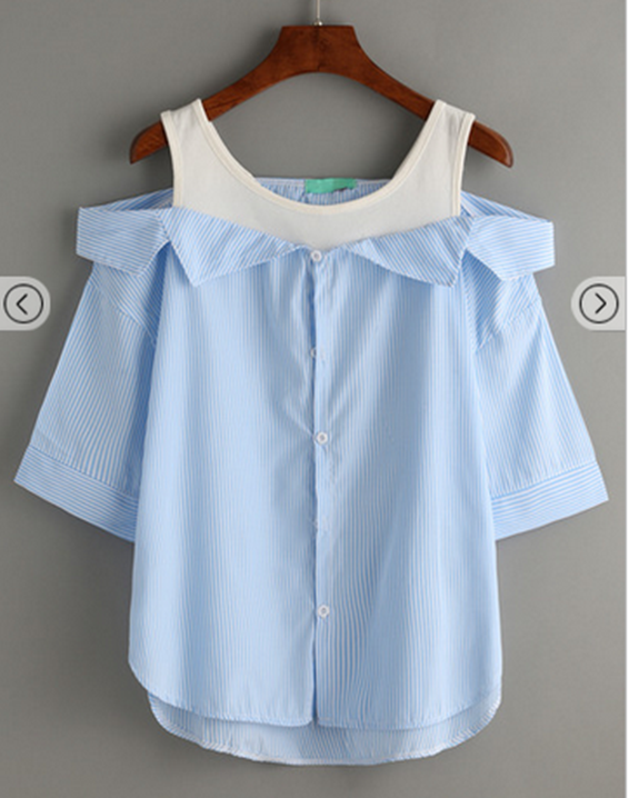 Para acompañar los shorts, unos vaqueros largos o unos culottes, una camisa en tonos celestes queda perfecta, tanto de día como de noche. Y si tiene un toque trendy como los cold shoulders, mejor aún.
