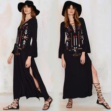 AliExpress.com Product – Women Bohemian Long Dress Autumn Sexy Deep V-Neck Black Hippie Embroidery Dresses With a Slit Female 2015 New Boho Clothing