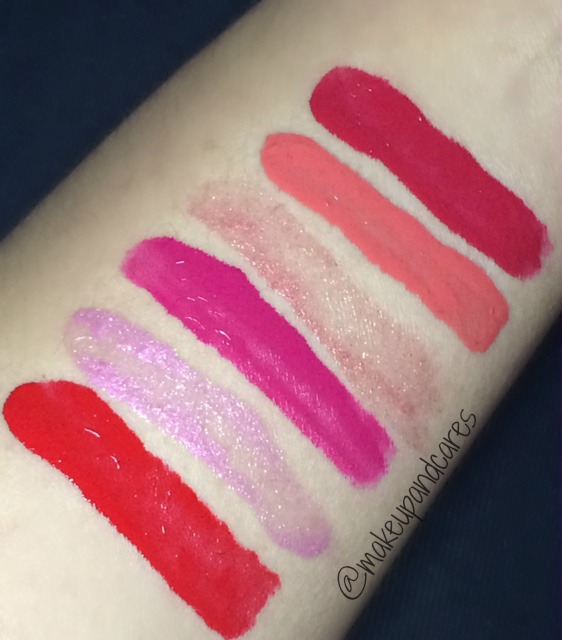 La línea cuenta con 16 labiales. He tenido la oportunidad de probar 6 de ellos , dos textura gloss y 4 labiales fijos . Los tonos más claros tienen ese efecto gloss sin embargo cuando se aplican en en labio y transcurren unos minutos se fijan totalmente , eso si, su pigmento tiene menor intensidad y lo que se puede apreciar es un tono natural y pequeñas partículas de shimmer .