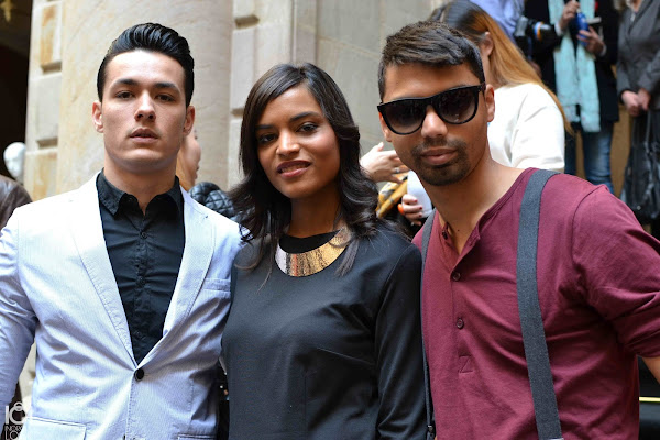 Posando en el photocall junto al cantante y modelo Erick Cayuela y con la Periodista Gabriela Rengifo
