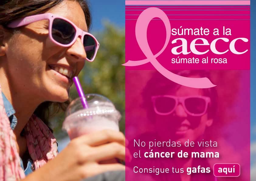 Desde la AECC han hecho unas gafas rosas para colaborar con la causa. Se pueden comprar en la web de la asociación, o en los puestos instalados por la calle. Si las consigues, hazte una foto con tus gafas rosas, súbela a las redes sociales con el hashtag #sumatealrosa y explica por quién o quiénes te pones las gafas.... Creemos una marea rosa !!