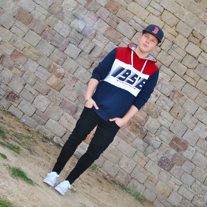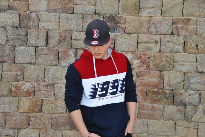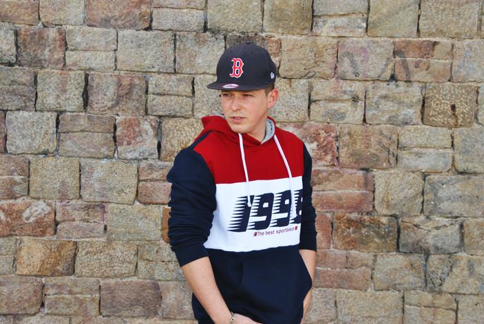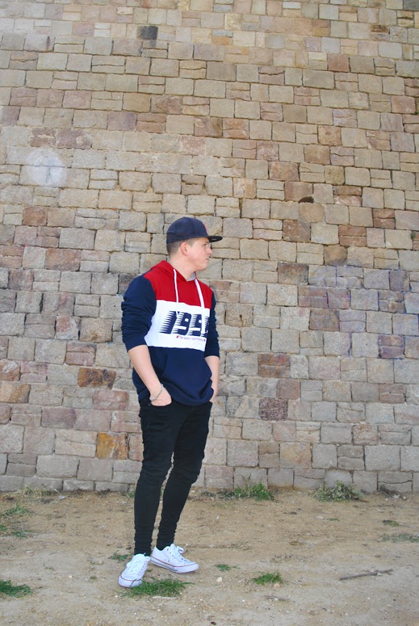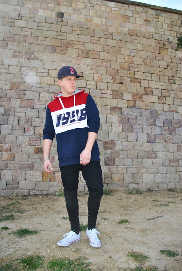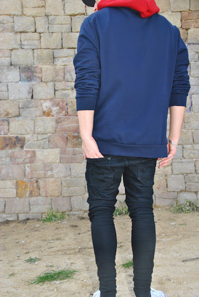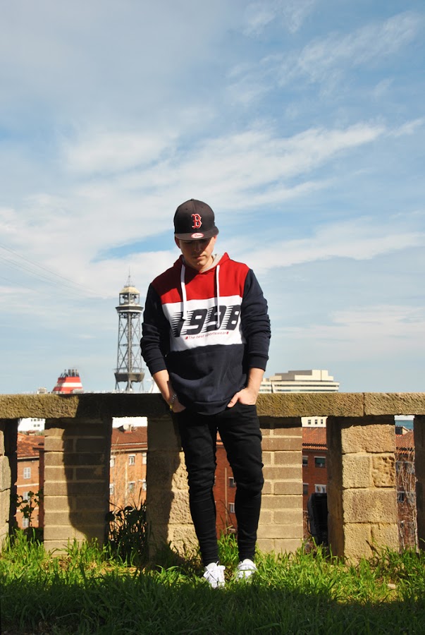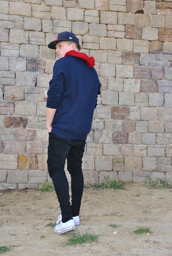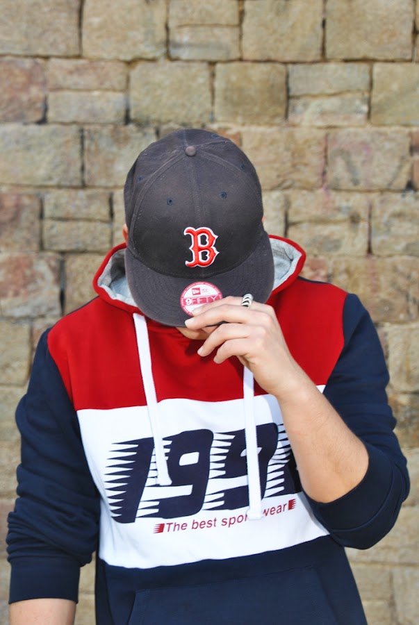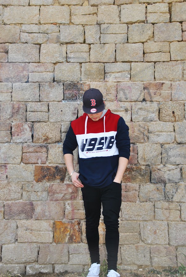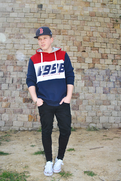 En el look de hoy destaco la sudadera que compré en Bershka este invierno... Buscaba una prenda afelpada que pudiera usar en estos días sin necesidad de ponerme una chaqueta, pero que abrigara lo suficiente para no pelarme de frío, sobretodo cuando se marcha el sol. Encontré ésta que me encantó porque me recordaba mucho a las que tenía cuando era pequeño, estilo ochentero total! Cuando llegué a casa con ella me di cuenta que tenía los mismos colores que mi gorra favorita de los Boston Red Sox y que combinaba de maravilla! Para completar el look unos skinny jeans "cagaos" y mis bambas estilo Converse que compré en un bazar oriental por dos reales (como dice mi abuela) y que son comodísimas!