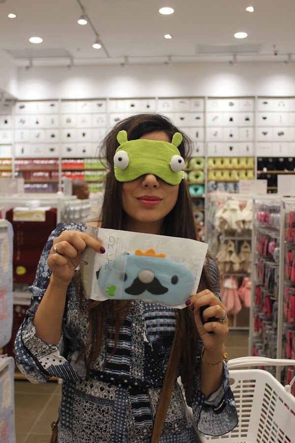 My favorite item from all of them: this face shade with cooling effect. So this one not only covers your eyes from the light but also relax them while you sleep, so cool!