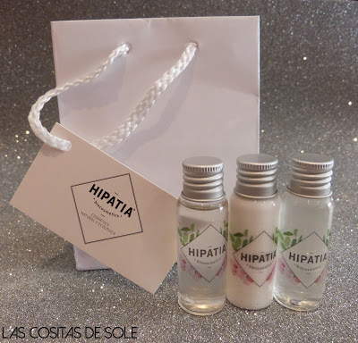 HIPATIA (Ahora se llaman ATIPAHI): Empresa de cosmética bio fabricada en Barcelona de nueva creación y que fabrica con sello certificado bio, tienen pocos productos porque están empezando, nos obsequiaron con unas muestras de lo que venden en éste momento, un gel de baño, champú y crema corporal sus componentes principales son aceites de almendra y stevia, no contiene parabenos ni siliconas.