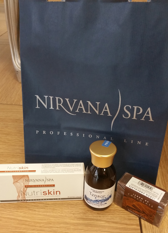 Nirvana Spa es una marca de cosmética profesional que podemos encontrar en salones de belleza y spas. Al ser esteticista, conozco la marca desde hace muchos años y en esta ocasión quisieron mandarnos para el evento tres de sus productos: de nutricosmética, el Nutriskin para mejorar la calidad de nuestra piel desde dentro, el aceite corporal reafirmante y tensor y la pastilla de jabón de chocolate.