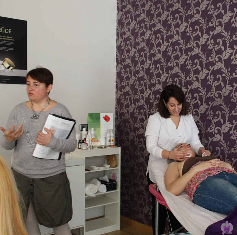 Ana, creadora de Amapola Bio Cosmetics, nos contó como fundó la marca y como ella, farmacéutica especializada en cosmetología, crea sus propias fórmulas para poner los mejores ingredientes naturales a sus cosméticos. También nos hicieron una demostración de un tratamiento facial con su nueva línea de cabina y el tratamiento de manos. Y nos obsequiaron con su producto estrella, la leche limpiadora de saponaria. Os contaré en detalle de los productos de Amapola Bio Cosmetics en otro post.