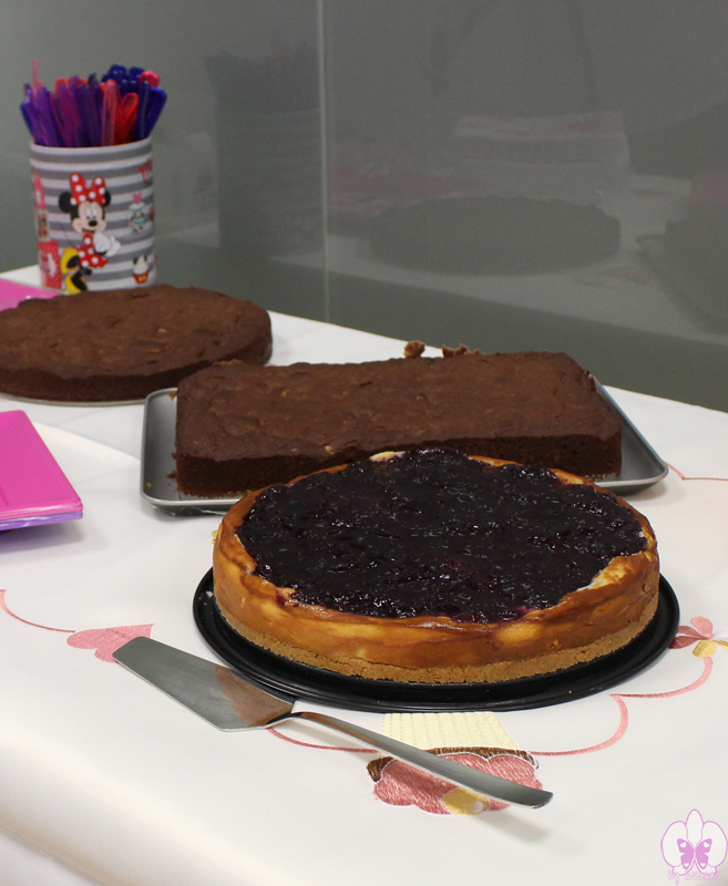 El desayuno, no podía ser de otra forma, tenía que hacerlo yo con todo mi cariño para las bloggers invitadas y en esta ocasión realicé tarta de queso, brownies y cookies americanas con trozos de chocolate negro.