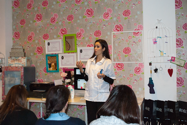 Además de la presentación de sus productos, Masglo nos ofreció una clase en la que nos enseñaba a aplicar los esmaltes correctamente.