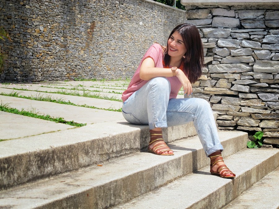 La camisa de varios colores es el punto focal para saber cuál será la paleta de colores que vamos a usar. Tonos rosados, amarillos y naranja son los tonos en los que nos vamos a sentir más cómodos a la hora de combinar. Unos Jean súper clásicos y unas sandalias color neutro son los compañeros perfectos para mantener un look colorido pero sin caer en lo carnavalesco, ayuda a mantener el equilibrio del outfit.