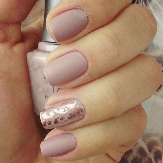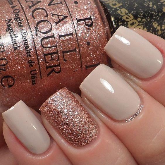Algo sencillo de hacer y que le dan originalidad a tus uñas es pintar una sóla uña o varias con un esmalte diferente, quizás un tono más oscuro de la gama de los nude o un color con brillo.