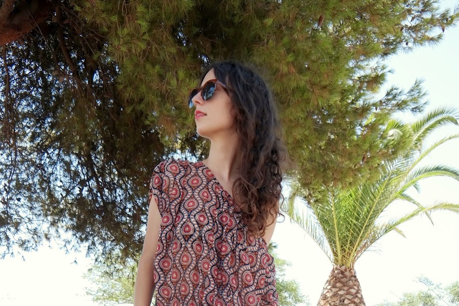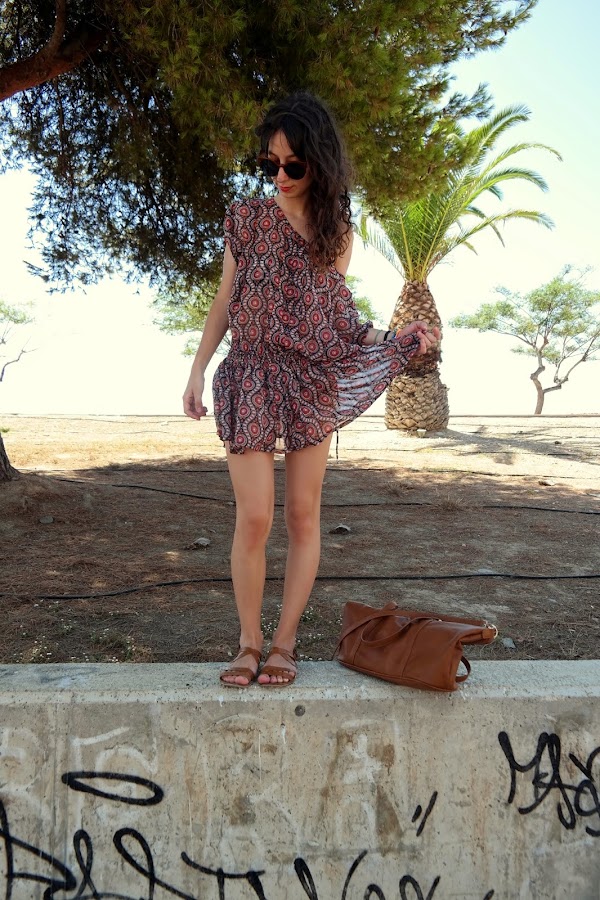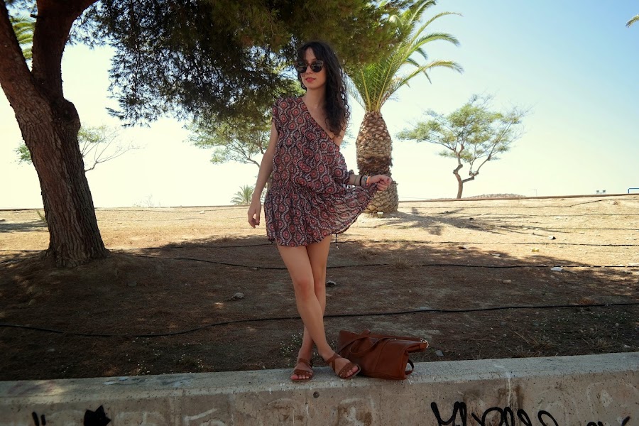 Ya sólo me quedan dos semanas de vacaciones. El verano ha pasado muy rápido, pero aún tengo imágenes que hice por donde veraneo para enseñaros porque allí no paraba de hacer fotos y dormir. Pues el look que hoy os traigo es con un vestido tipo blusa con estampado étnico diferente y perfecto para estar por allí de paseo durante el día, ya que es muy fresquito. A mi me encantan este tipo de vestidos tan veraniegos para este tipo de momentos. En este caso combine el vestido con sandalias y bolso marrón, aunque creo que con negro tampoco se quedaría mal, y con esas gafas nuevas de parfois, las cuales le he dado muchísimo uso este verano y más que le voy a dar este invierno. Espero que os guste el look porque las fotos tengo que reconocer que no salieron muy bien. Gracias por vuestros comentarios. Un beso.