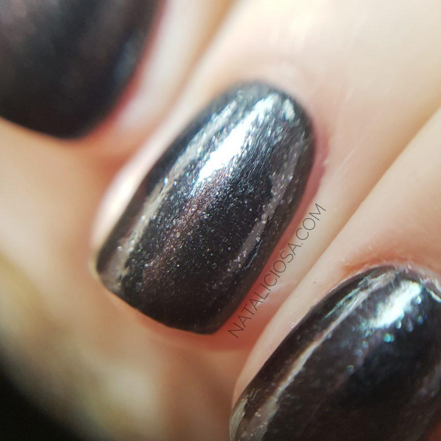 Es un tono negro de base y plagado de purpurina fina plateada. Este esmalte de uñas negro es uno de esos básicos que nos sacan de cualquier apuro fiestero, no cabe duda. Además me parece súper bonito porque me recuerda a una noche estrellada… ains, si es que cuando me pongo romántica no hay quién me gane jajaja