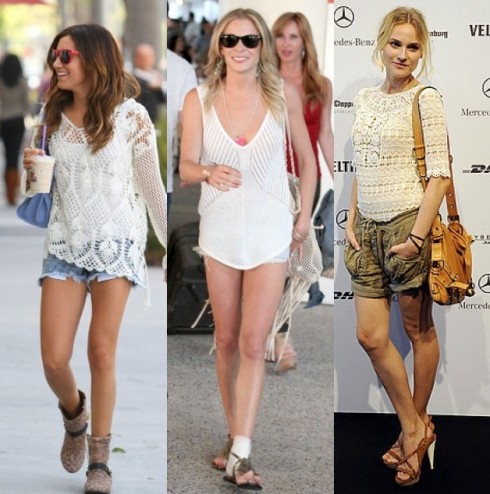 1. Boho chic. Combina tu top croché con unos short y saca tu lado bohemio complementando tu ouffit con unas cuñas y un sombrero.