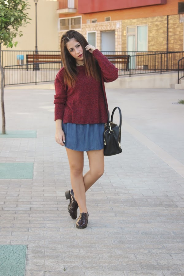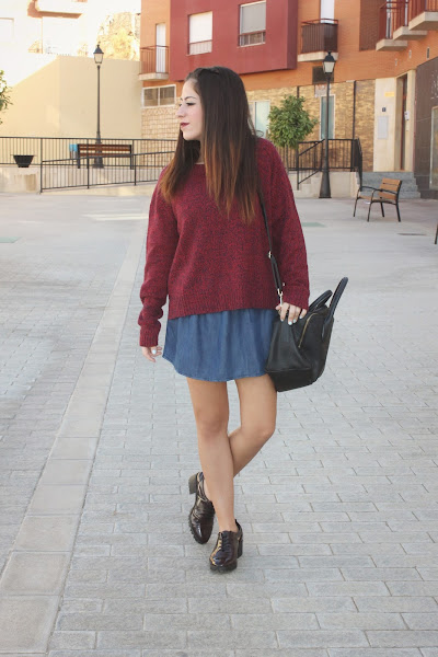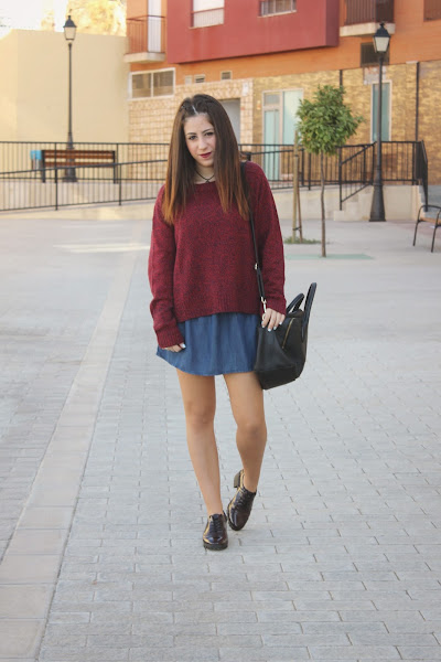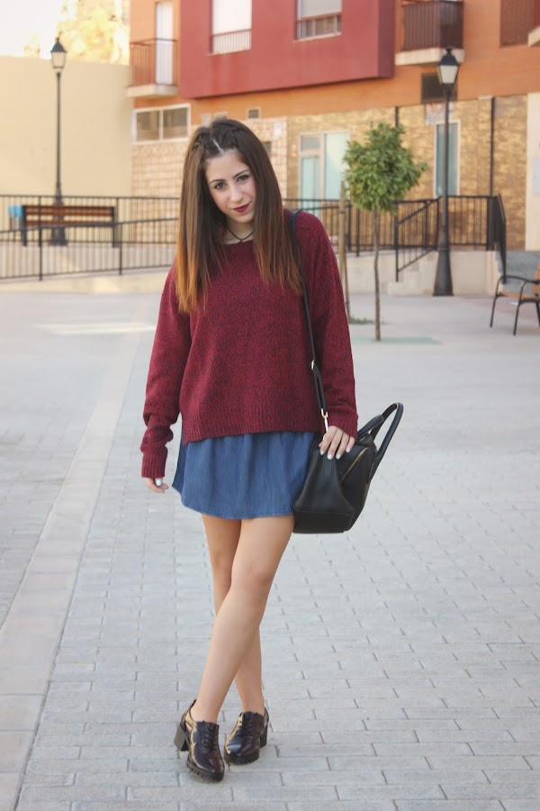 Hemos decidido enseñaros tres formas diferentes de combinar zapatos masculinos, tipo oxford, ya que son de las tendencias más fuertes en calzado para mujer, y a mi personalmente me vuelven loca!! De todas formas mi look es súper femenino y chic, llevo un jersey de color Marsala, que sin duda es el color estrella de este otoño invierno, y una falda vaquera.