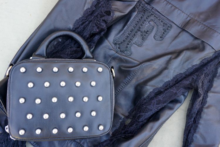 Katya del blog Style Sprinter ha elegido unas botas masculinas y las ha combinado con un top de cuero negro al igual que su cazadora, y una falda de estampado floral que le da un toque dulce a su look súper rockero!