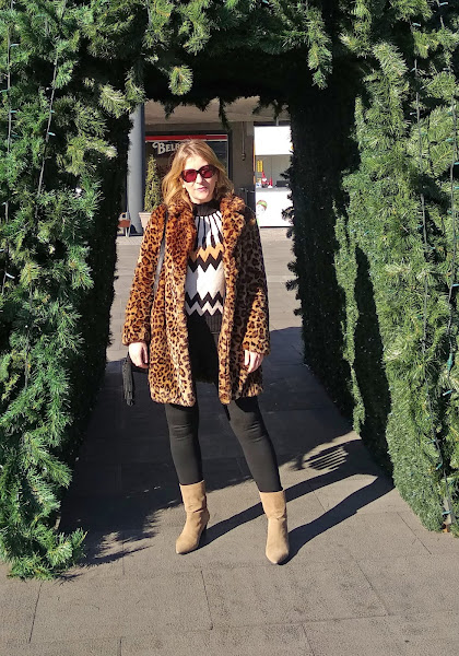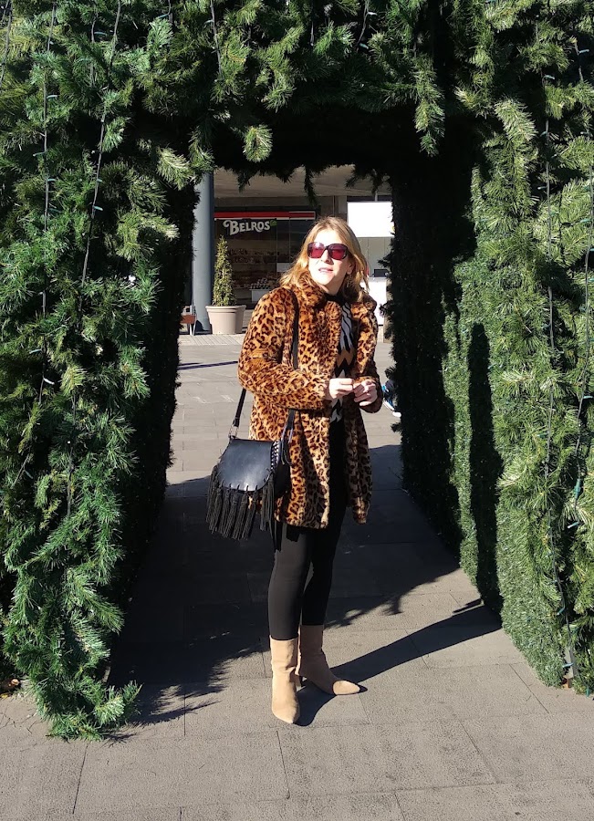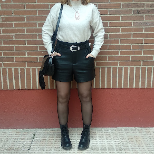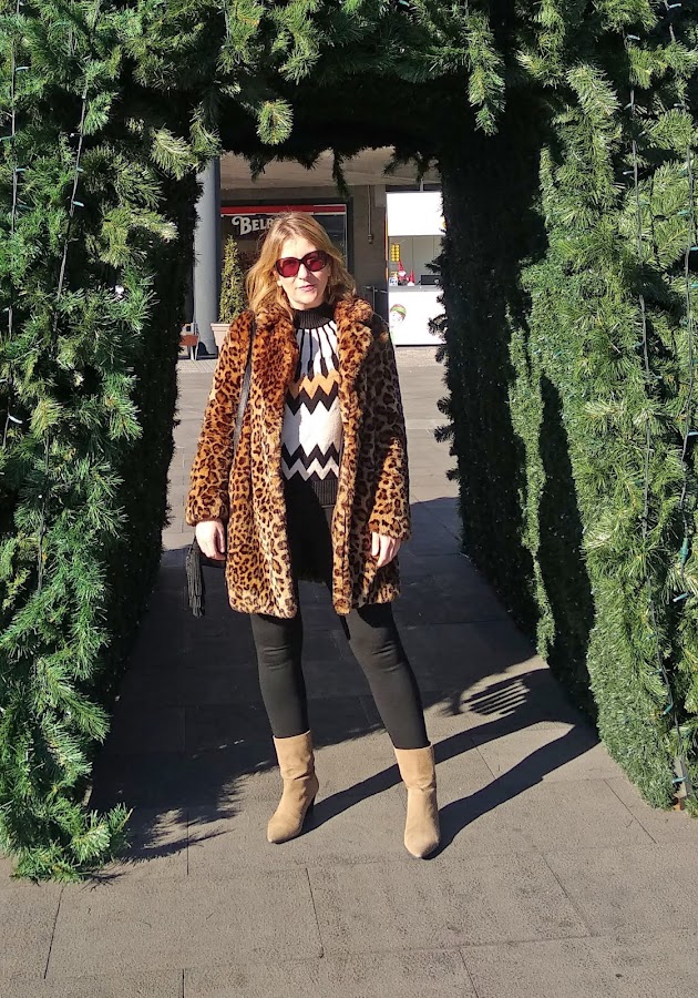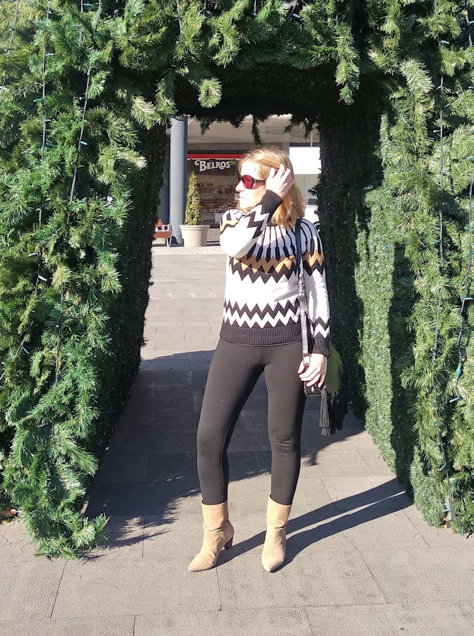 Look 3. Legging negro + jersey multicolor + botines marrones