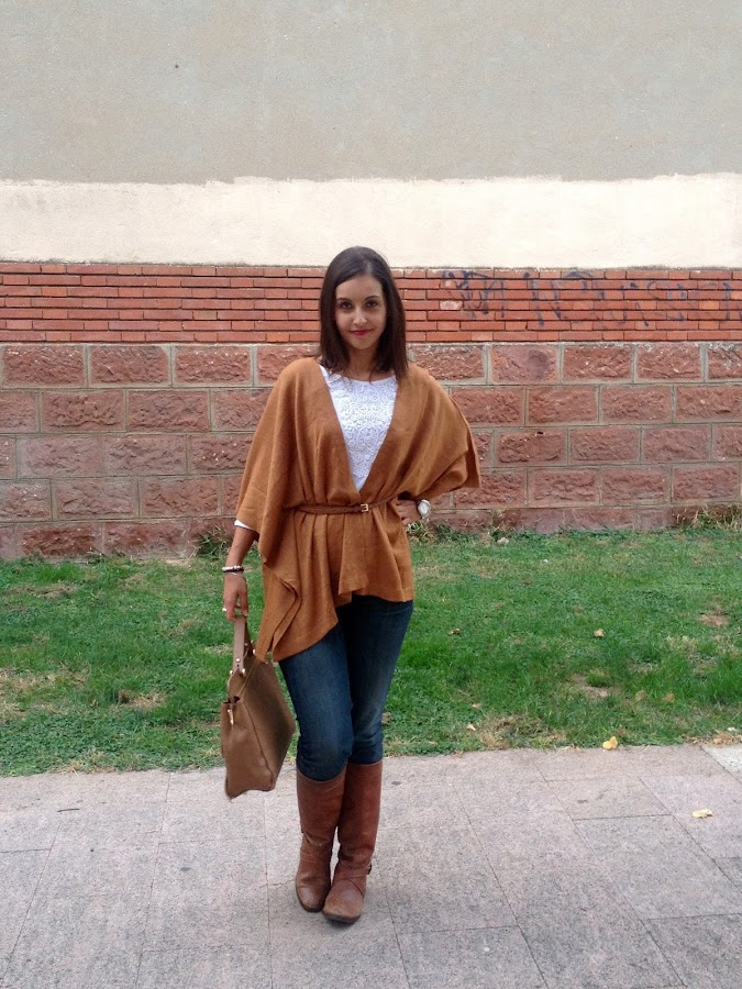 The second outfit that I propose you for this day its an easy outfit with jeans, a romantic tee with lace and a cape that gives a chic touch to the outfit. A comfy and feminine outfit, like the outfit I showed you in this post.