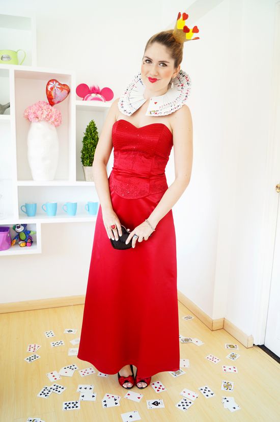 ¿y ese vestido rojo que tienes guardado desde hace tiempo? Dale vida con muchos corazones, y una baraja de cartas para hacer un cuello diy.