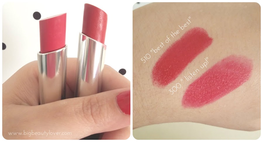Yo elegí 2 colores lllamativos , el 510 "best of the best" que es un rojo precioso super pigmentado y cremoso y 300 "listen up! que es un fucsia bien potente también super cremoso pero no tan pigmentado como el anterior .