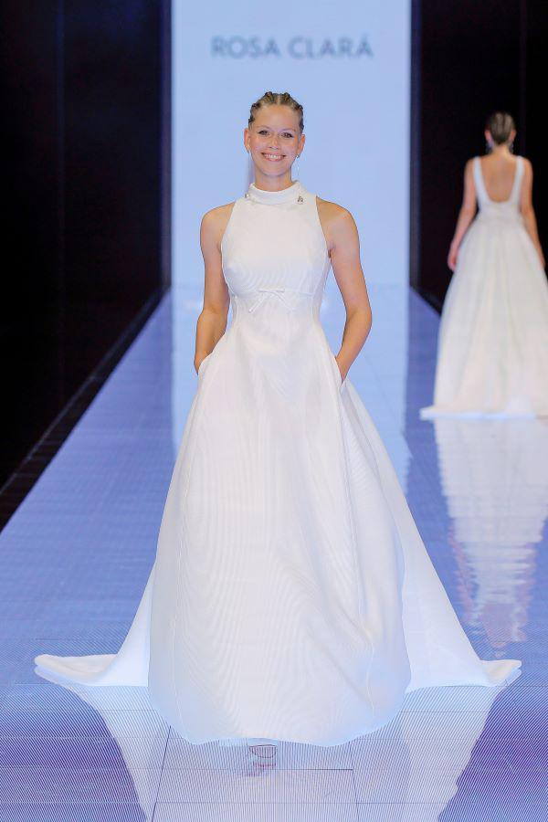 Rosa Clará nunca defrauda y ésta vez no iba a ser menos, junto con sus vestidos de novia se lucieron peinados clásicos reinventados, recogidos con 6 trenzas africanas que se unen en un moño bajo con brillo y textura ligera. Un look atrevido, favorecedor, duradero y súper cómodo para el día más importante de nuestras vidas.