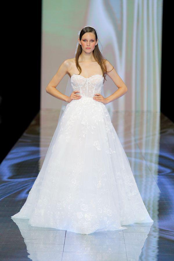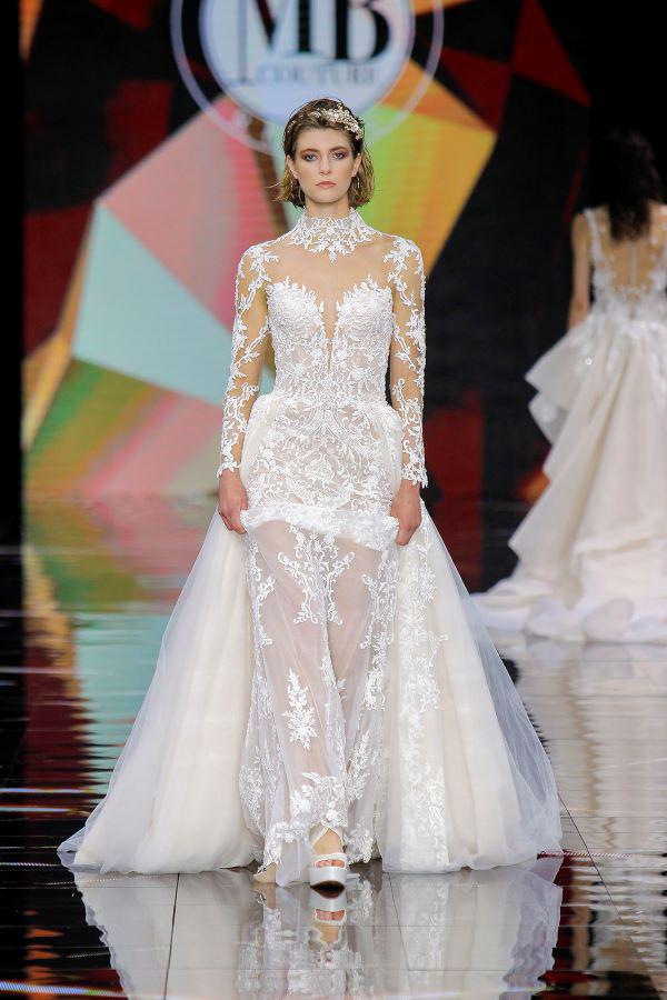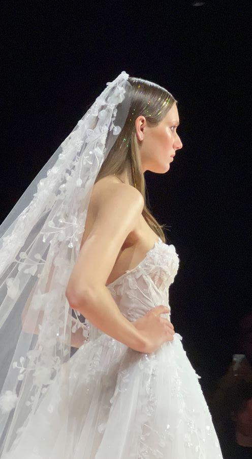 Para la marca de moda libanesa Elie Saab ha sido su primer desfile, vestidos preciosos y sencillos, clásicos en los que la protagonista es la novia en sí, se completan con peinados también clásicos, el moño que nunca pasa de moda, para ello, en Kevin Murphy se trabajó para crear diseños sin volumen con raya lateral, base pulida y brillante.