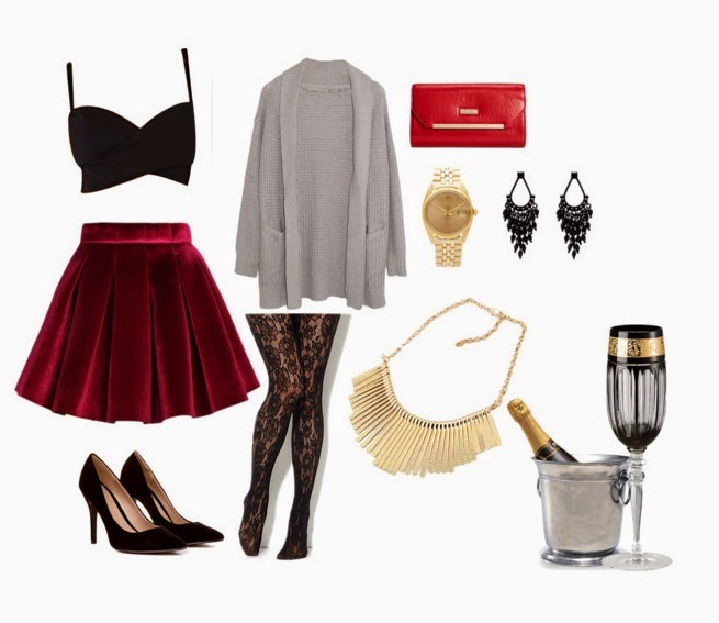1. Crop top de Amazon // 2. Falda de Chicwish // 3. Chaqueta de Les pommettes // 4. Zapatos de salón de Fashion union // 5. Medias de New York & company // 6. Clutch de Marc Fisher // 7. Reloj de Rolex // 8. Pendientes de Oasis // 9. Collar de Amazon