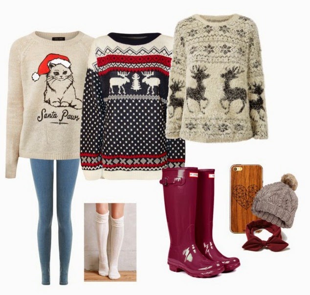 1. Jersey Santa Paws de New look // 2. Jersey renos azul de Wearall // 3. Jersey renos blanco de New look // 4. Jeggins de Atterley road// 5. Calcetines altos de Anthropologie (Más aquí)// 6. Botas de Hunter // 7. Funda de iPhone de Ahalife// 8. Gorro de H&M // 9. Diadema de American eagle