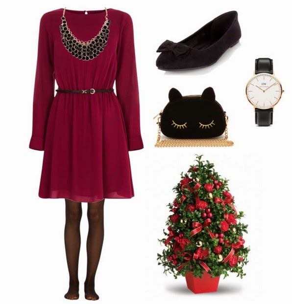 1. Vestido de John Lewis // 2. Collar de Chicastic // 3. Medias de Barneys // 4. Manoletinas de New look // Clutch gato de Love culture // 5. Reloj de Daniel Wellington